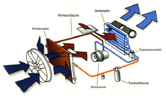 Die Klimaanlage des Fahrzeuges ist ein Verbund aus Wagenheizung und Kältemittelkreislauf. Dies ermöglicht die Erzeugung der gewünschten Klimakonditionen, völlig unabhängig von den äußeren Bedingungen.